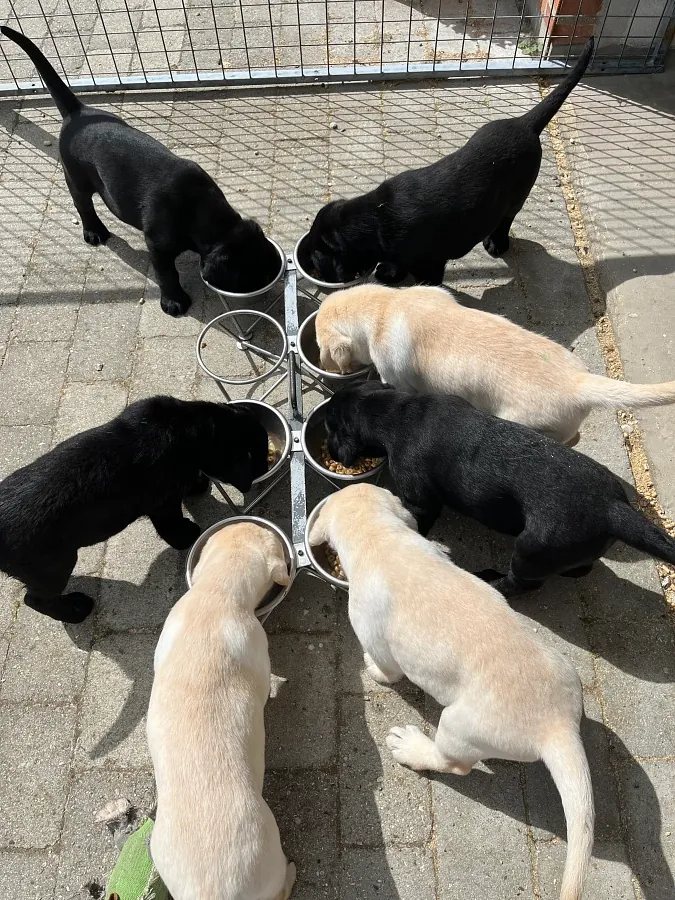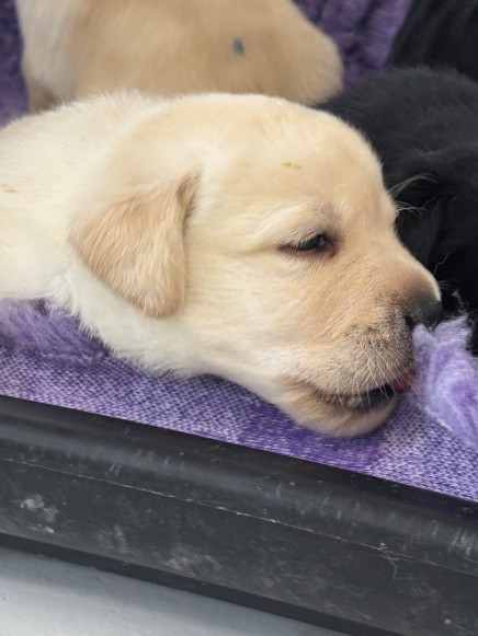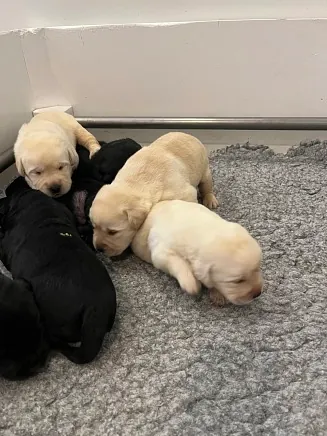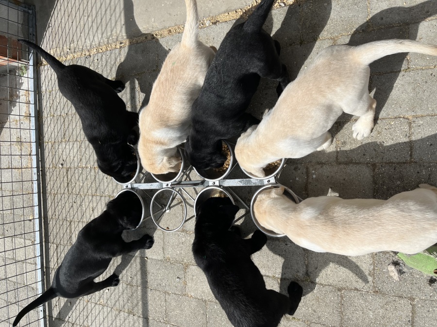 28.04.25: Hvalpene er nu 4 uger gamle. De vokser dag for dag, er begyndt at få hvalpemad og er begyndt at gå mere omkring og blevet mere opmærksomme på deres omgivelser, der forsigtigt skal udforskes.