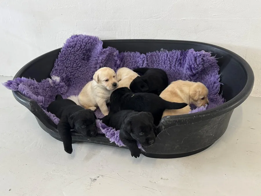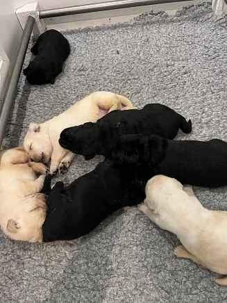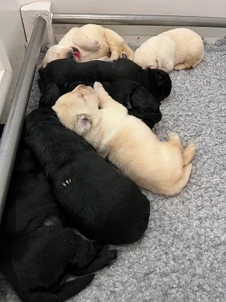 03.04.2025: Vi har fået hvalpe! Fanny har født 7 hvalpe; 2 hanner og 5 tæver og alle har det godt.